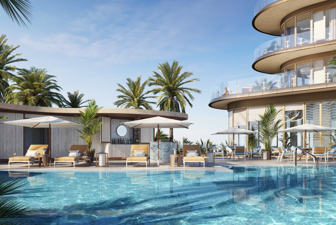 • Elevated pool deck, private spa, and state-of-the-art fitness center